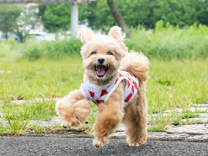 公園で元気に走る犬の姿を撮影したペットフォト