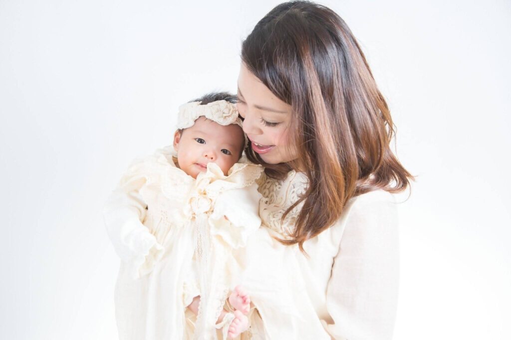 どちらでも問題ありません。白はぶたえに産着を掛けて着用する和装が伝統的ですが、ベビードレスなどの洋装を選ぶご家庭も多くなっています。家族の希望や赤ちゃんの着心地を大切に、良いと思えるものを選んでください。