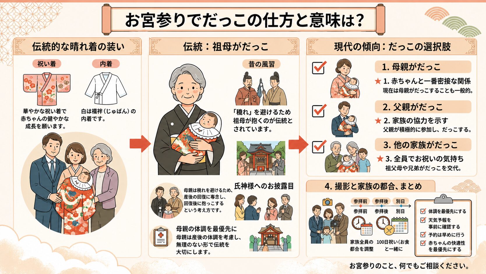 この記事でわかること 六曜とは何か? 大安・友引・仏滅など意味と七五三への向き不向き 仏滅に七五三参りをしても問題ない理由 六曜よりも大切な、日取り選びの実践的なコツ はじめに 「七五三の参拝日、仏滅はやっぱり避けたほうがいい?」「大安じゃな...